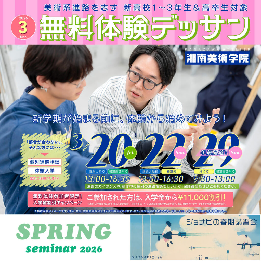 3月は、全3回の無料体験デッサンイベントを開催します!! 美術系の進路ガイダンスも行うので、「美大入試の第一歩」をまずは…