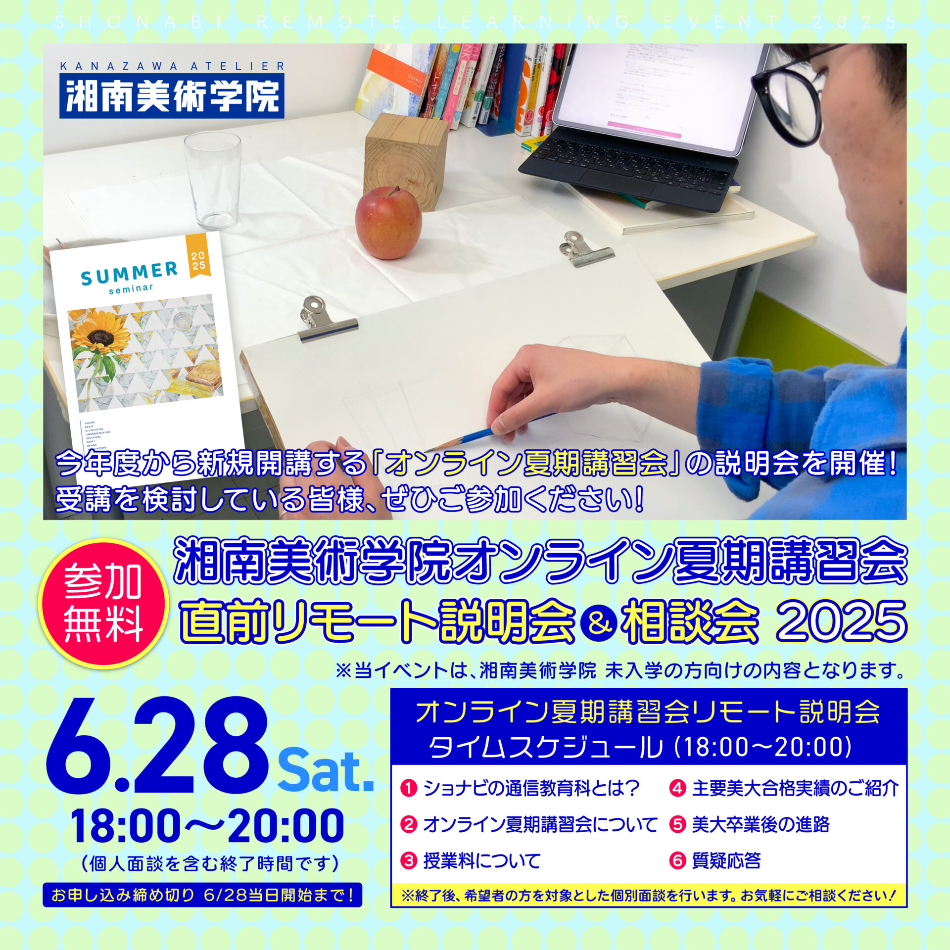 6/28(土)『湘南美術学院「オンライン夏期講習会」直前リモート説明会&相談会2025』開催のお知らせ!!