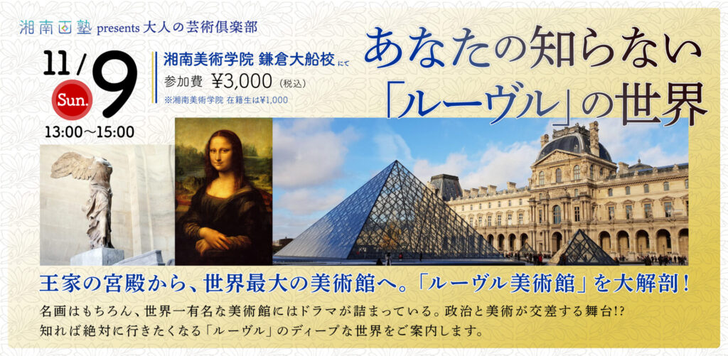 2025/11/09 特別講座「大人の芸術倶楽部」の「あなたの知らない「ルーヴル」の世界〜王家の宮殿から、世界最大の美術館へ。「ルーヴル美術館」を大解剖!〜」