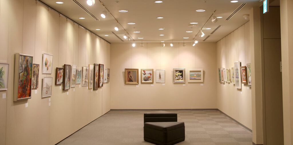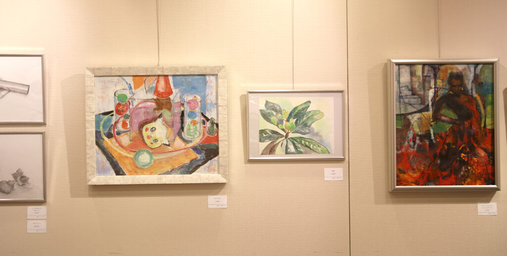 今年の成果を発表する場として、幅広い年代の画塾生の力作が一同に並びます。