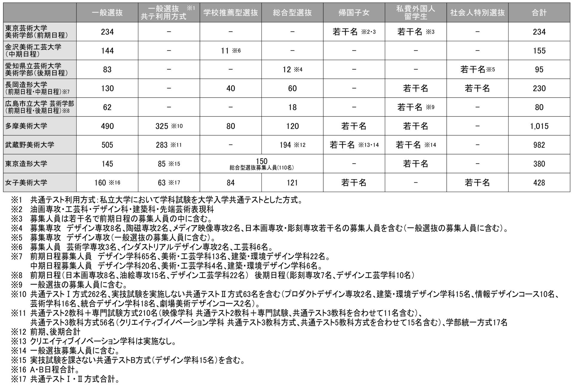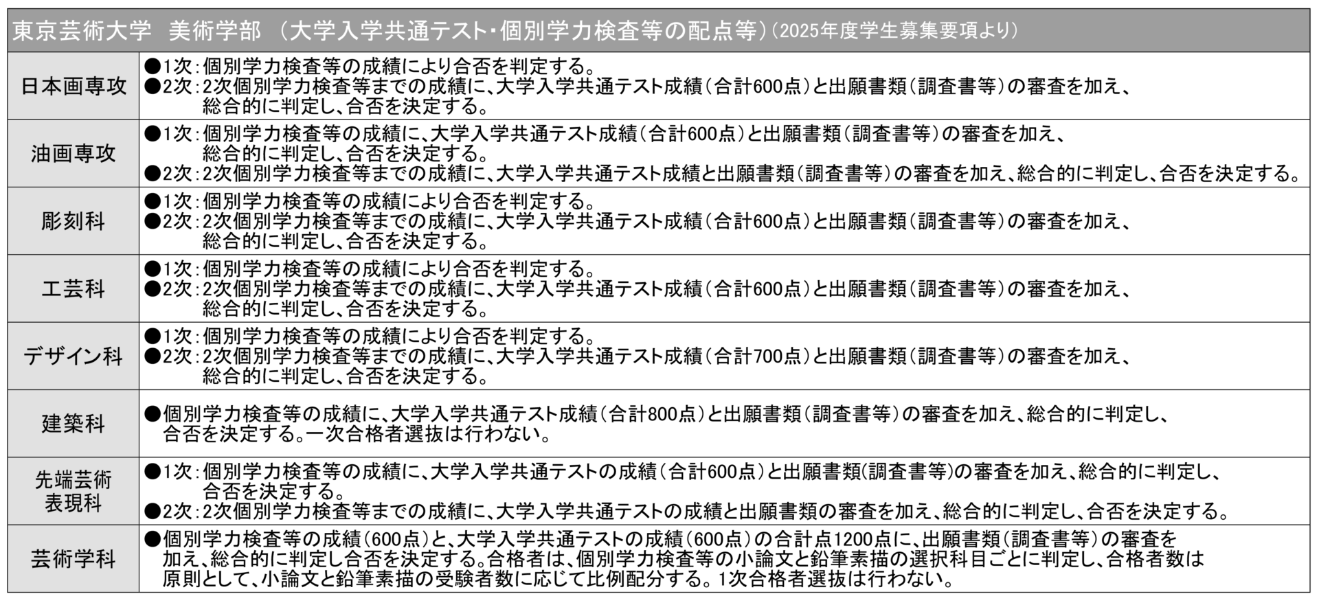 主要美術系大学の紹介 専攻科別 専門試験紹介 国公立大学 配点比率 入学試験別募集人員 (2025 年度入学者選抜要項・募集要項より) 「 デジタル作品集」のご案内 東京芸大など合格者の入試再現作品をはじめ、優秀作品を「デジタル作品集」として公開しております。 ※ 初回のみ登録が必要となります(申込完了後、IDとパスワードが自動送信されます)。※コンテンツ内容は随時追加・更新予定です。 デジタル作品集 お申し込みフォーム