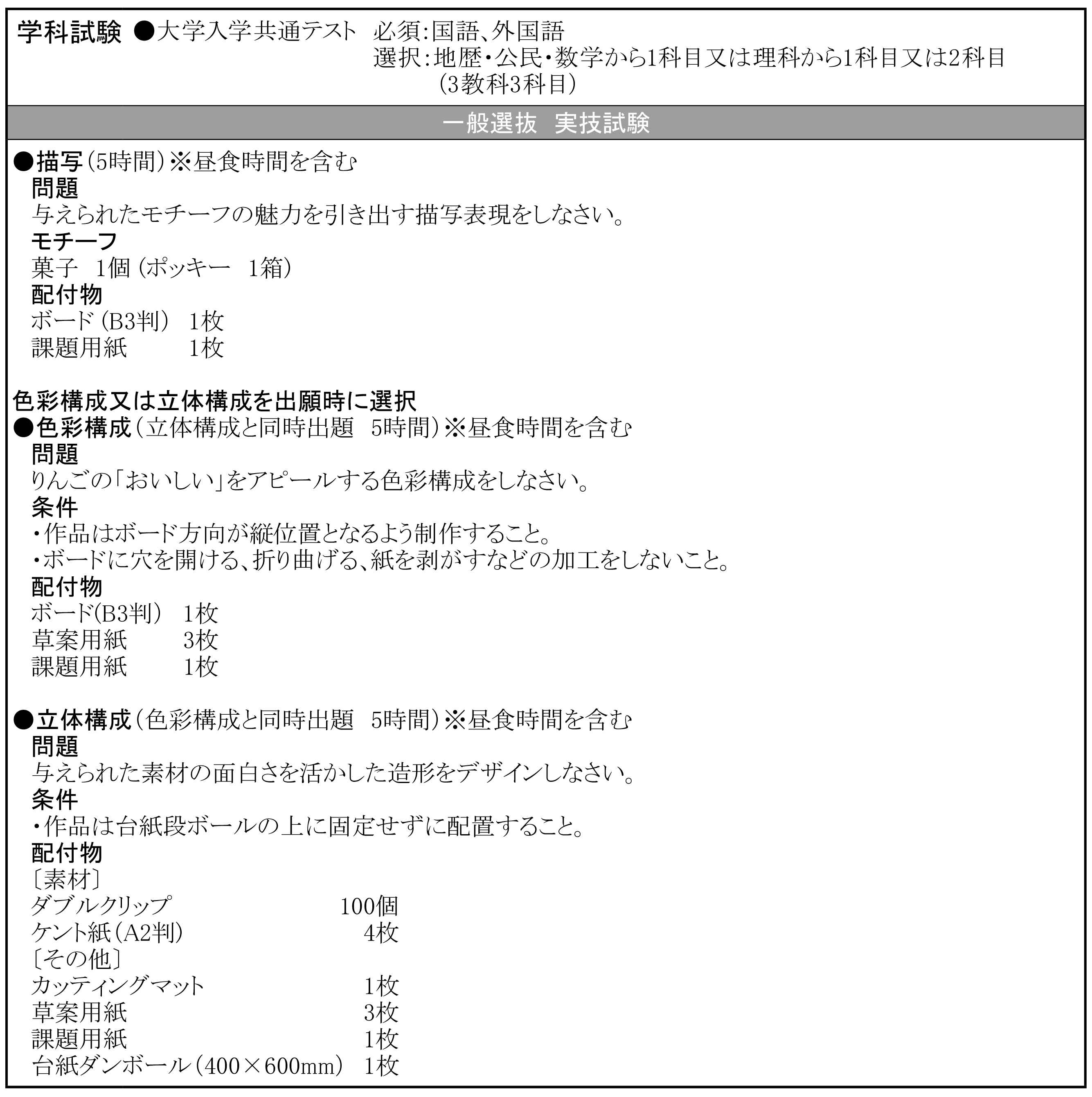 デザイン科 他大学の入試課題はこちら