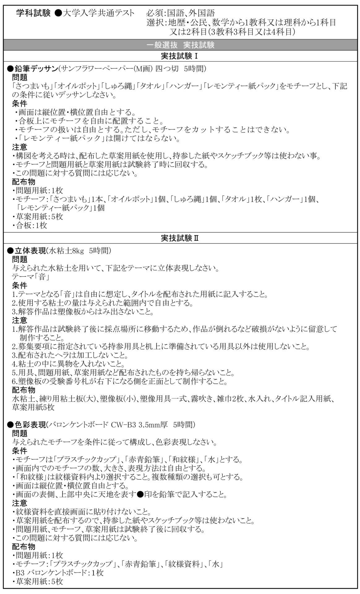 工芸科 他大学の入試課題はこちら
