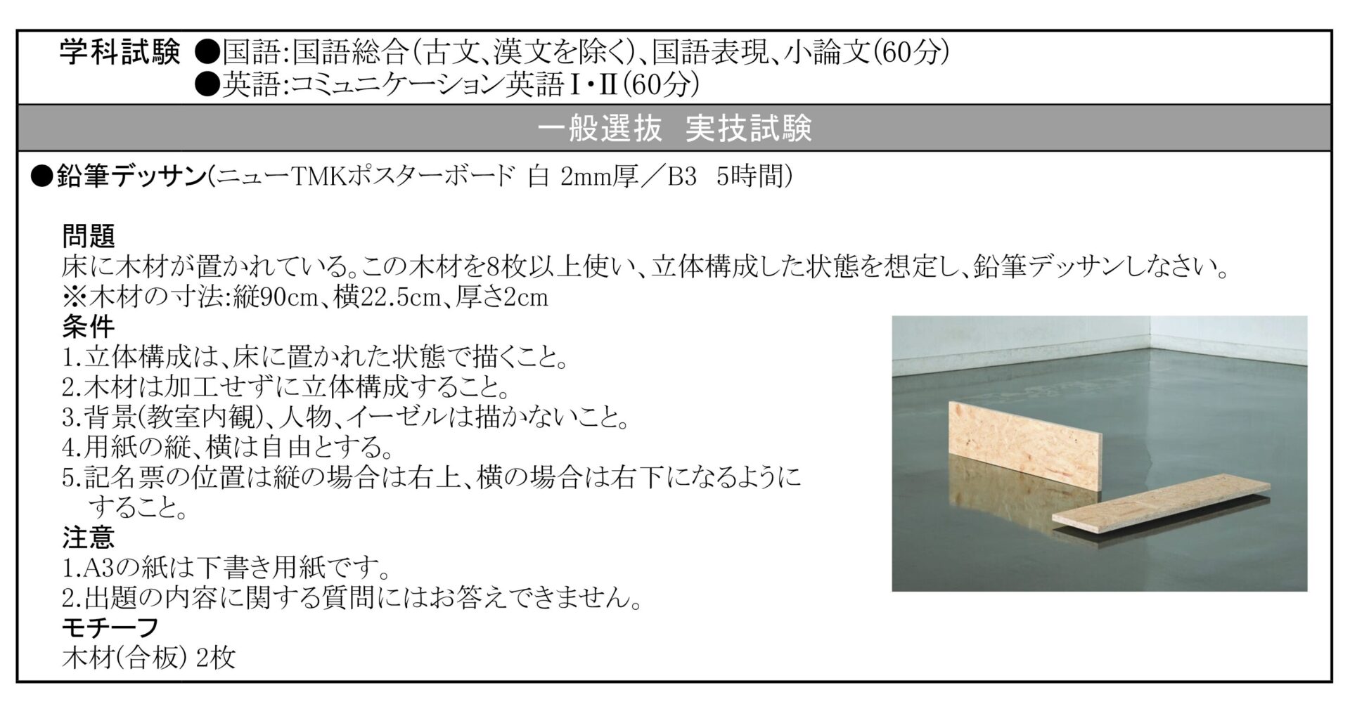 建築科 他大学の入試課題は