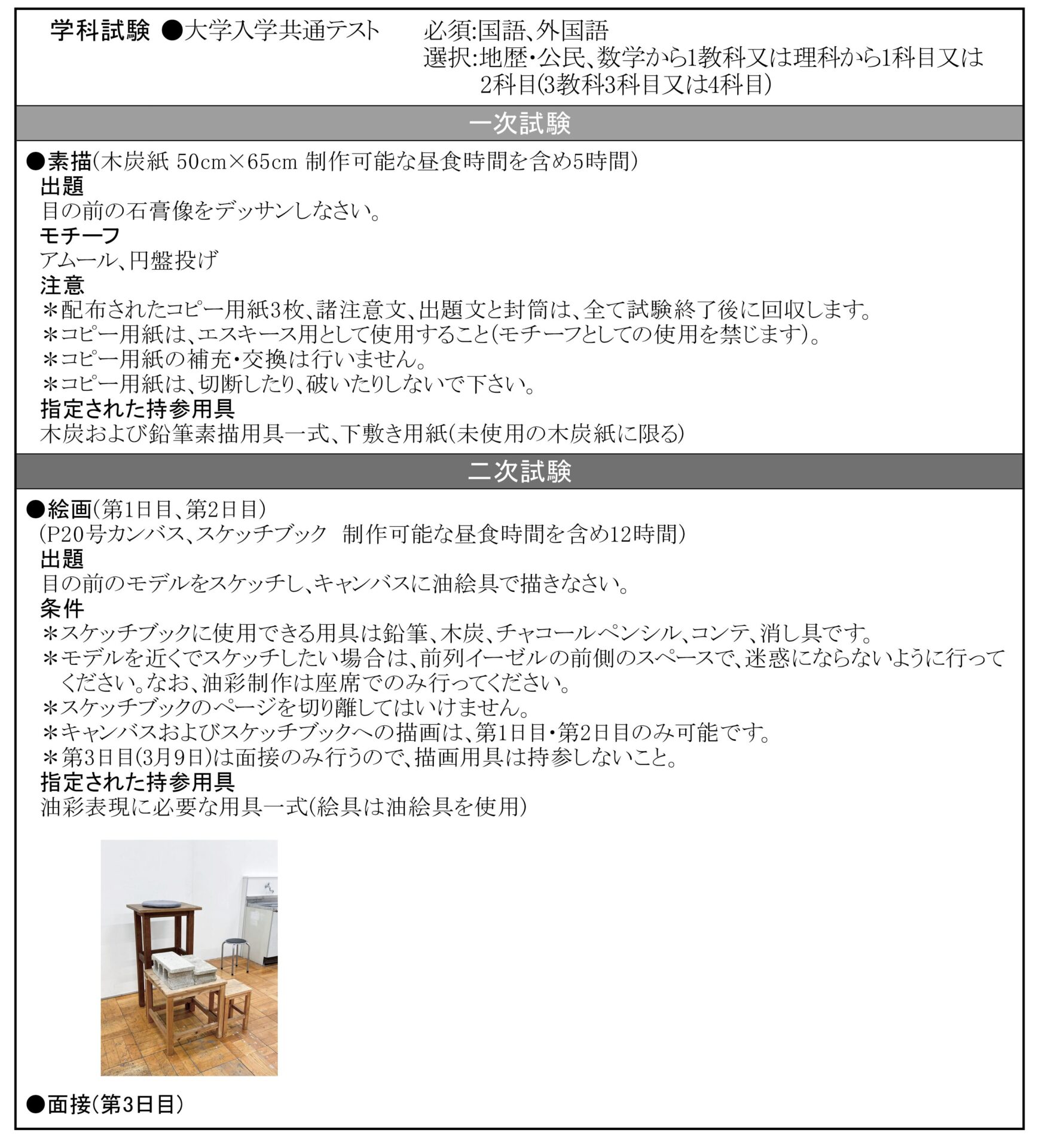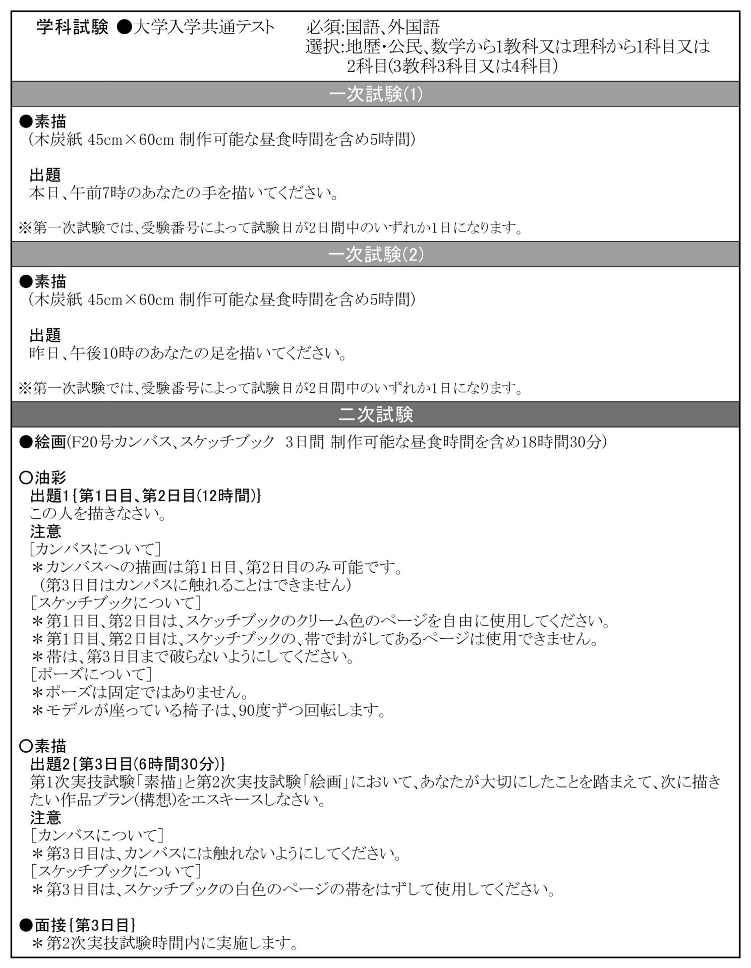 油画科 他大学の入試課題はこちら