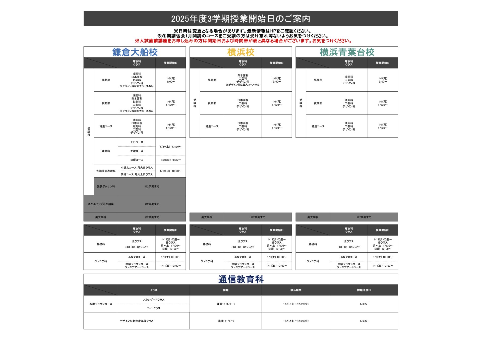 (※)1月3日、4日のジュニア科授業・冬期講習会は予定通り横浜校にて開講いたします。