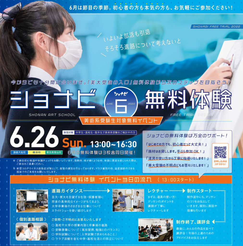6月無料体験のお知らせ! 2022年6月5日 お知らせ イベント情報 6/26(日)に3校舎で無料体験会を開催! 中学生〜高卒生対象。画材はお貸しするので、手ぶらでご参加可能◎新しいことを始めたい!そんな初心者の方にもオススメのイベントです。 お申し込みはこちらから URL Copied!