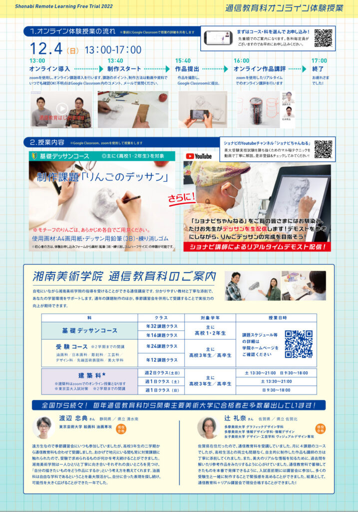 「学校が美大受験対策の対象外、または美大受験に不安がある」そんな美大受験生の皆さん、この機会にぜひご参加ください。