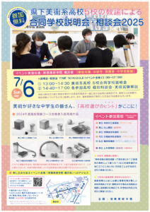 5月28日(日)美術系進路説明会(中学生対象)のお知らせ! 2023年5月9日 News イベント情報 5/28に美術系進路説明会(中学生対象)を開催! 美術が好きで将来に繋げたい!美術をもっと学びたい!「じゃあ進路ってどうすれば良いのかな?」という疑問にお応えします。【対象】中学生、保護者の方、中学校教諭 お申し込みはこちらから URL Copied!