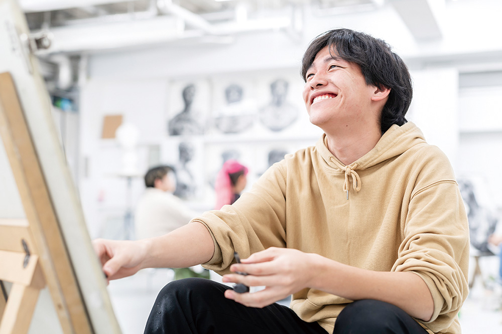じっくりと作品に向かう意味では学年や経験は関係ありません!ショナビ彫刻科の学年を超えて立体が好きな生徒が集まる空間は、とても活気のある環境です。立体に興味がある人は、まずトライしてみよう!